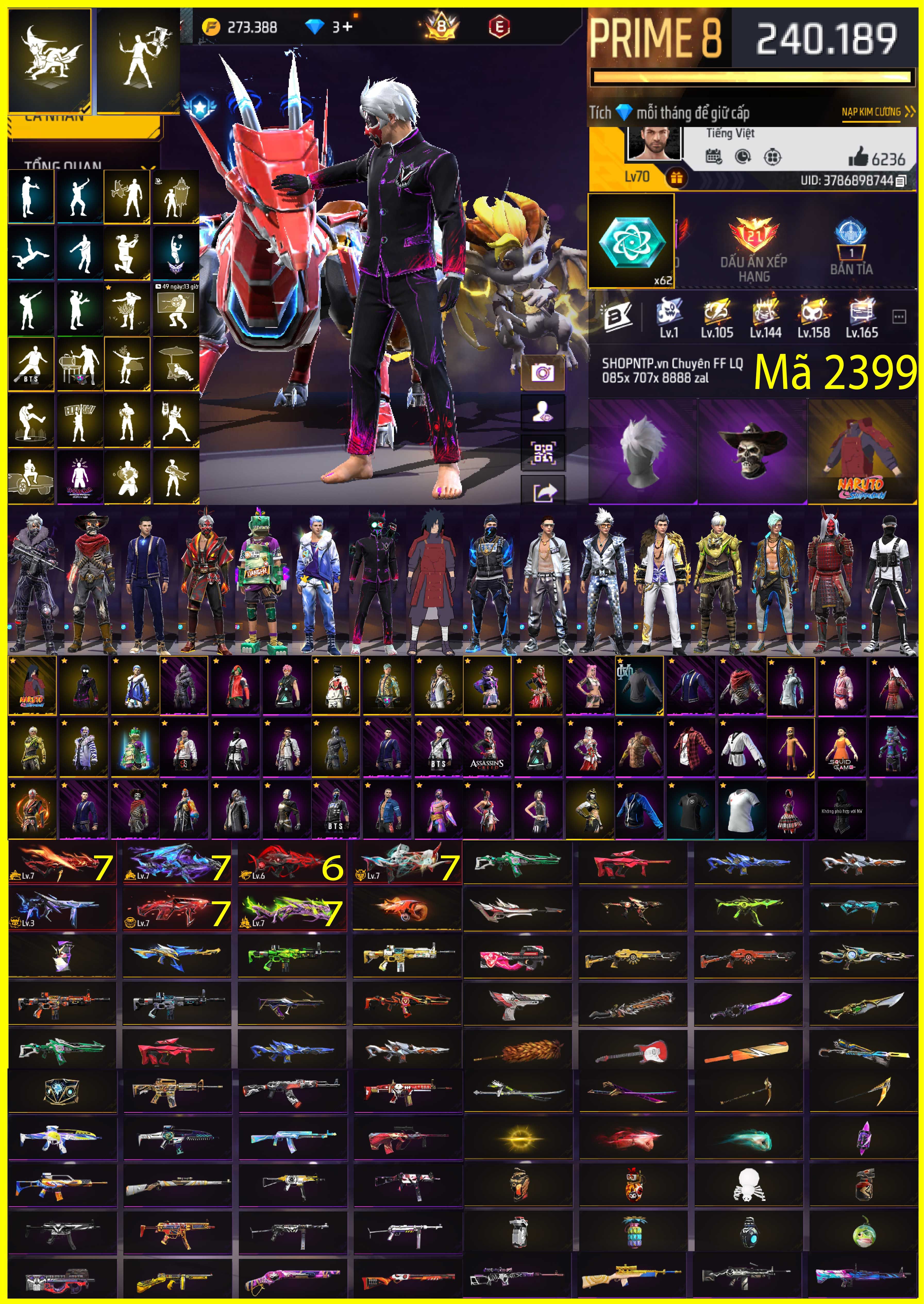 Mô tả: Itachi , thỏ , lãng khách , Maca , HD 10k kc , gần VIP 8 , 4 cay 7 , 7 cây nang cấp