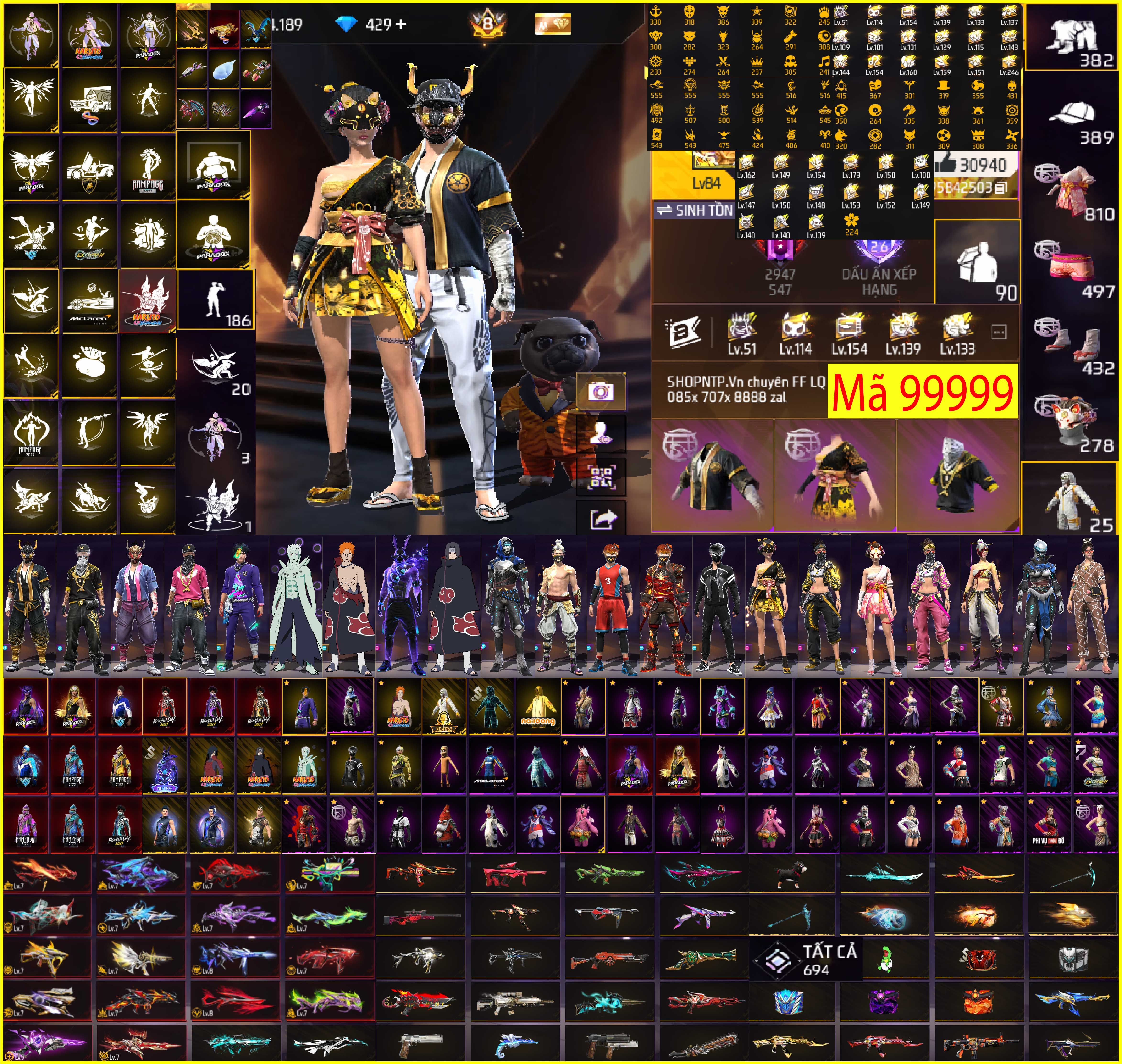 Mô tả: Khỉ 5 , Tulen Gojo , Biron , Vio Nobara , Yan tan , Kixi thời không , Nak VT , Buf Cữu hơn 400 skin Full rip