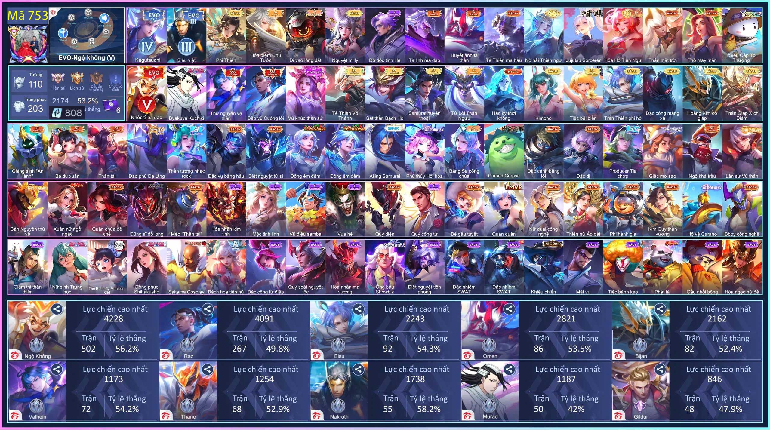 Mô tả: VIP 8 , Đồ Ngủ nè , lãng khách , nhiều đồ hót 2 cây 7 , 3 cây 6 , 1 cây 5 , 1 cây 4 dư 90 mảnh , 400 áo , lv 74 15k like , đấm nhất quyền